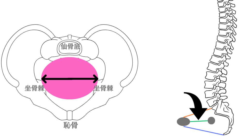 中間点である坐骨棘は産道の中で最も幅が狭くなります。
