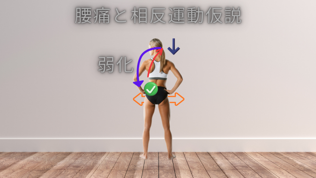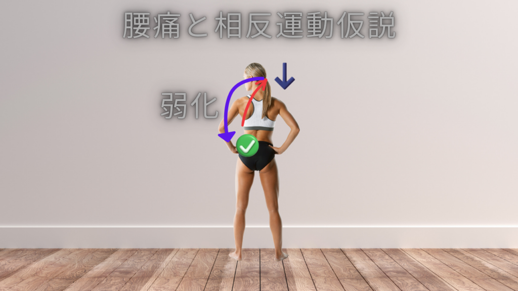 バランスを崩した場合相反運動に左右差が発生します。左側に問題がある場合、左股関節に体重を掛けると痛みが発生したり可動域の減少が見られます。応用ですが左股関節の位置を変化させると、痛みが減少して可動域が増加するポジションが発見できる場合もあります。