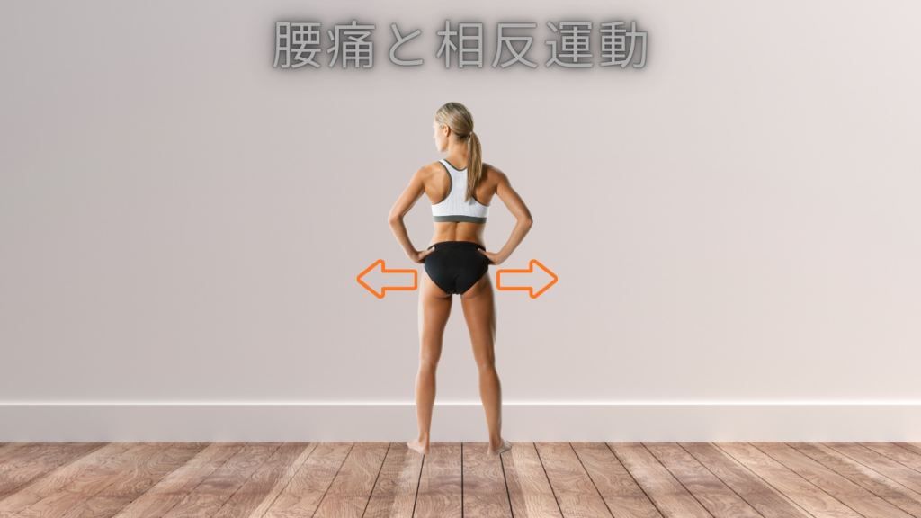 骨盤の相反運動とは左右の股関節に交互に体重を乗せる運動になります。これにより体重が乗った側は股関節の内転になり、仙腸関節の上部に圧力が加わり、第5腰椎は棘突起が反対側に回転すると考えられます。体重の乗っていない側は股関節が外転になり、仙腸関節の下部に圧力が加わり、第5腰椎は同側に回転すると考えられます。