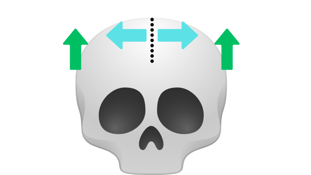 この矢状縫合を頭頂骨を持ち上げながら開くことで相反張力膜の緊張を軽減することができます。これにより脳脊髄液が循環する構造的な緊張の制限が減少していきます。